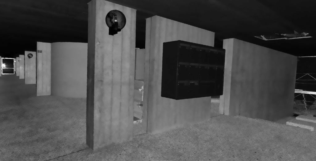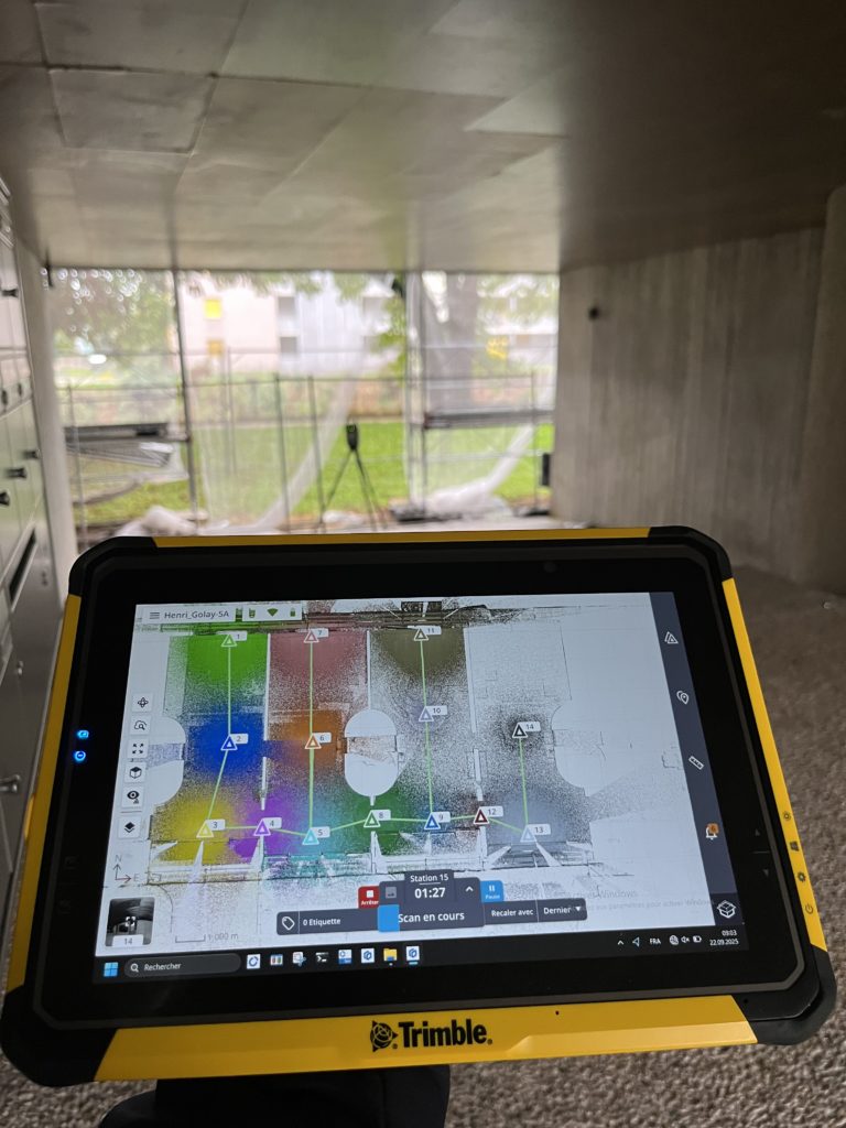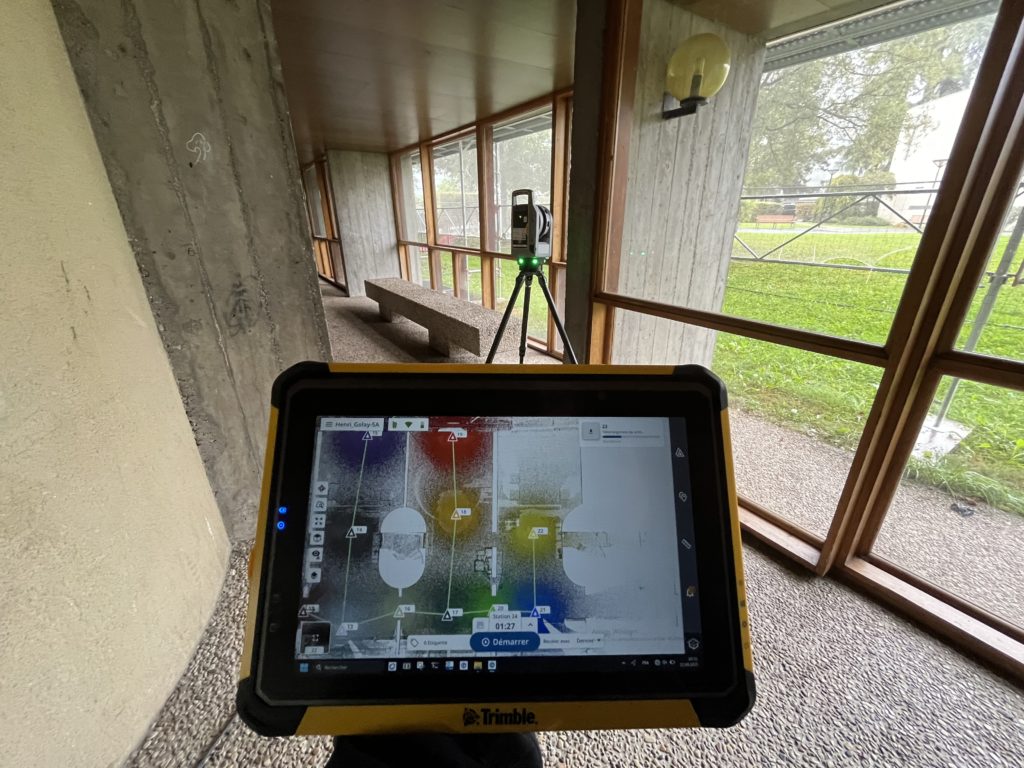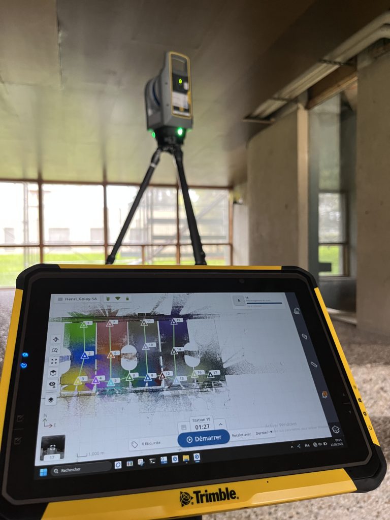 Relevé scanner de l’espace bâti dans le but de récupérer la géométrie exacte des plafonds suspendus.